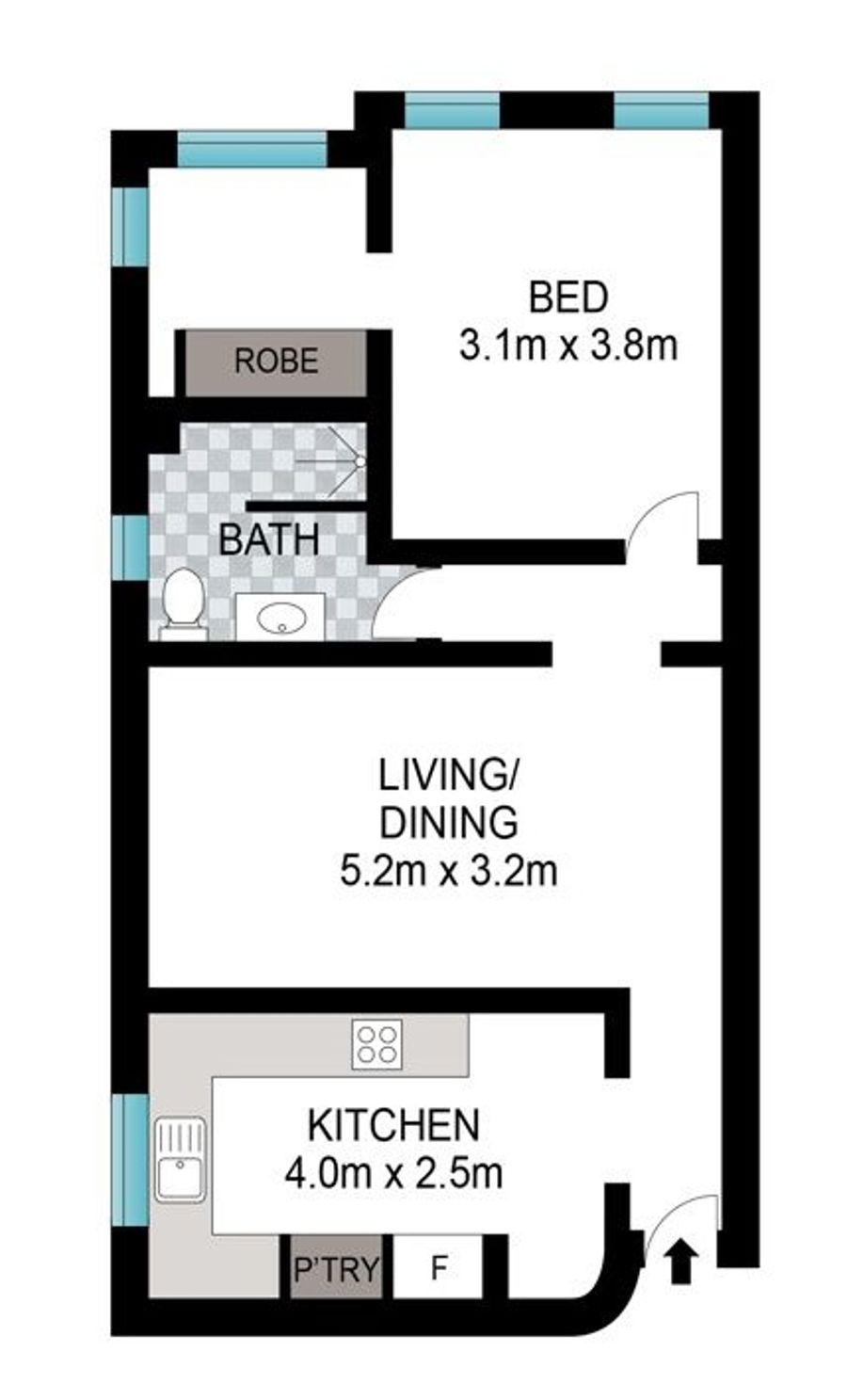 - Large 1 bedroom plus study with walk-in robe & new carpet